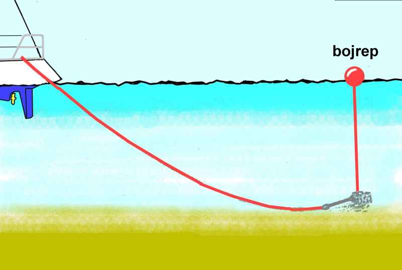A więc - rzucając kotwicę (powszechnie zwaną "żelazem") musicie oznaczyć jej usytuowanie. Choćby dlatego abyście nie zostali osobaczeni. Oznakowanie kotwicy to bojrep. Najbardziej elegancki to rybacka plastikowa "bobina" - pomalowana na oranż sygnałowy. Równie dobrze może to być pneumatyczny odbijacz. Bojrep służy też pomocą do poderwania (a nawet odhaczenia) opornej kotwicy, ale pod warunkiem, że jest do niej zamocowany w odpowiednim miejscu.