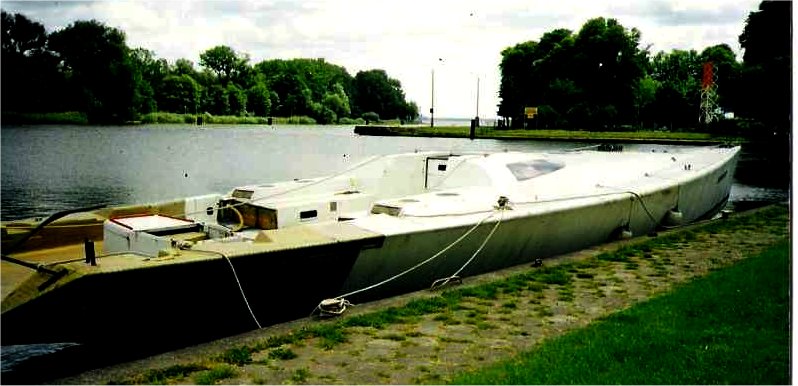 W roku 1995 ten jacht po prostu do Polski przypłynął celem przedłużenia. W Trzebieży zdjęto maszt i odkręcono balast i wszystko przewieziono nocą (gabaryty, zezwolenia) dalej od wody! Nie dokończono roboty, bo właściciel wpadł w "spiralę zadłużenia" jak byśmy to dzisiaj nazwali. No a potem, wiadomo. Jacht stał to tu, to tam i naprawdę groziło mu, że nigdy nie powróci już na morze. Odnalazłem co się dało, co się nie zniszczyło, czy nie zostało rozkradzione, wyłożyłem kasę, załatwiłem formalności i teraz zastanawiam się po co mi to było! Ale wiara czyni cuda, więc muszę być... optymistą.