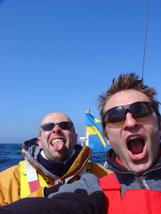 Na miejsce do Halmstad dotarłem 22 kwietnia późnym popołudniem, odbierając „po drodze” drugiego członka załogi – Rafała - z wielkiego pola trawy pod Goeteborgiem, które Ryanair wykorzystuje jako lotnisko (no, może trochę betonu też tam jest). Tore (jacht) wymagał doposażenia, gdyż jako folkboat w wersji regatowej i łódka wykorzystywana wyłącznie na popołudniowe rejsiki przy ładnej pogodzie tudzież klasowe regaty folkboatów, nie posiadał żadnego wyposażenia nawigacyjnego ani „hotelowego”; koje zaś to po prostu ławki z mahoniowych szczebelków. Po dwóch dniach pracy (i wieczornych imprezach „integracyjnych” z przesympatycznym Tore (człowiekiem) i jego rodziną) niezbędne minimum znalazło się na swoim miejscu, zabrakło jedynie konceptu na ulokowanie kompasu, który właściciel dorzucał w gratisie, w firmowym pudełku. Kompas zatem ze stacjonarnego został zaadaptowany na ręczny:). Głównym przyrządem nawigacyjnym był najtańszy model GPS Furuno; radio Raymarine z DSC przyleciało zza wielkiej wody po okazyjnym zakupie na e-bayu, a jako rezerwa miał służyć GPS G-Space współpracujący z palmtopem.
