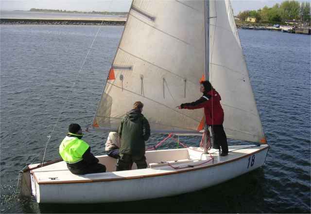 W niedziele przebudzenie było przykre... deszcz i białe grzywacze na Zatoce. Dylemat, płyną czy nie płynąć oto jest pytanie? Dwie załogi były trzy osobowe, wiadomo problemy przy wybalastowaniu łódki, było nie było mieczowej. Około południa wiatr trochę "siadł"... hymmmm a może tak sobie wmówiliśmy:-)) W każdym razie zarefowano groty, w duchu zmówiono "Ojcze nasz..." i w pierod. Parę treningowych kółek w basenie portowym i naprzód w kierunku kaszycy. Okazało się, że nie taki diabeł straszny jak