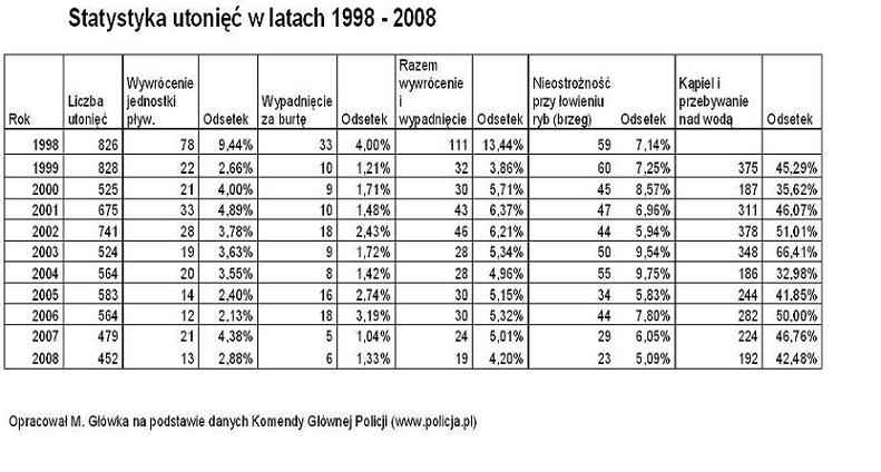 Policja nie prowadzi oddzielnych statystyk utonięć żeglarzy bo są to przypadki marginalne. Tak jak napisałeś dane dotyczące wywrócenia się jednostki pływającej, czy wypadniecie za burtę dotyczy również kajaków, rowerów wodnych , łodzi wiosłowych a także żeglugi profesjonalne, zatem dane z 2008 rok obejmują np. ofiary zatonięcie Rozgwiazdy na Jesieni 2008.