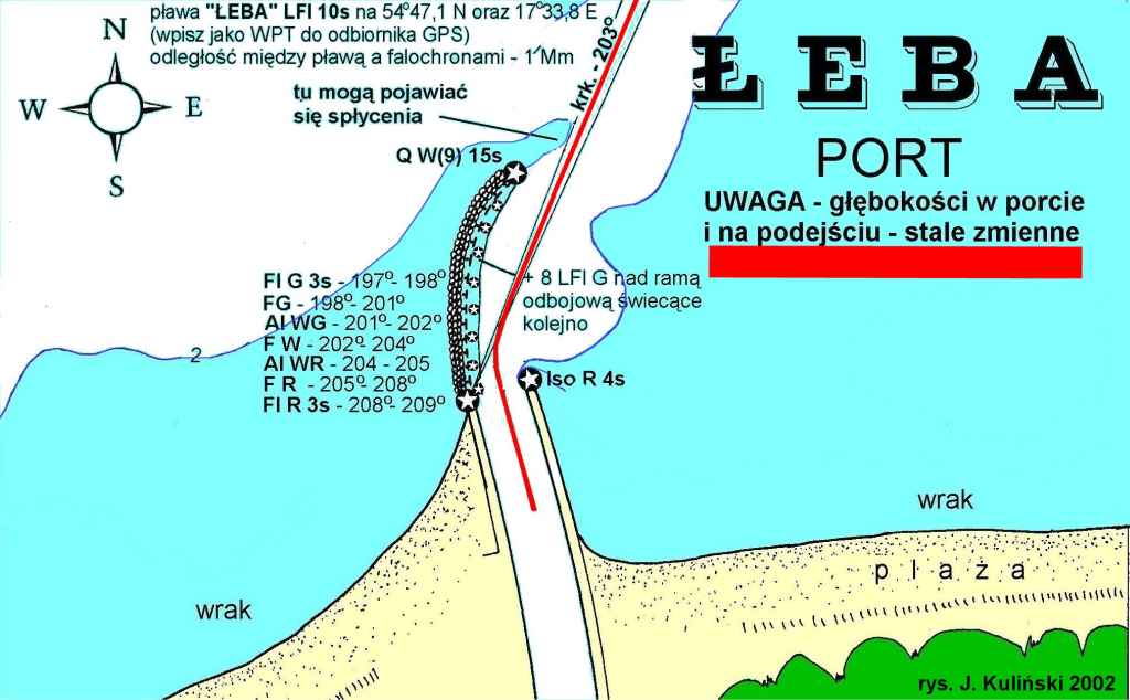 Łeba to temat stary. Trudne miejsce, bez dalekiego wyprowadzenia falochronów w morze (por. PPOM str. 205) nie należy oczekiwać jakiejś zasadniczej poprawy warunków wejścia. Kolejna przebudowa falochronów kosztowała by krocie, a skutek .... hmm... niewiadomy. Hydrotechnika to takie specyficzne budownictwo, w którym do końca nic nie wiadomo. Przykład - Władysławowo, a Mierzeja Helska. Czyli Łeba, jeśli chce być poważnym portem - jak za dawnych lat powinna mieć własną pogłebiarkę. No właśnie - to też bardzo kosztowne, czyli kółko się zamyka.