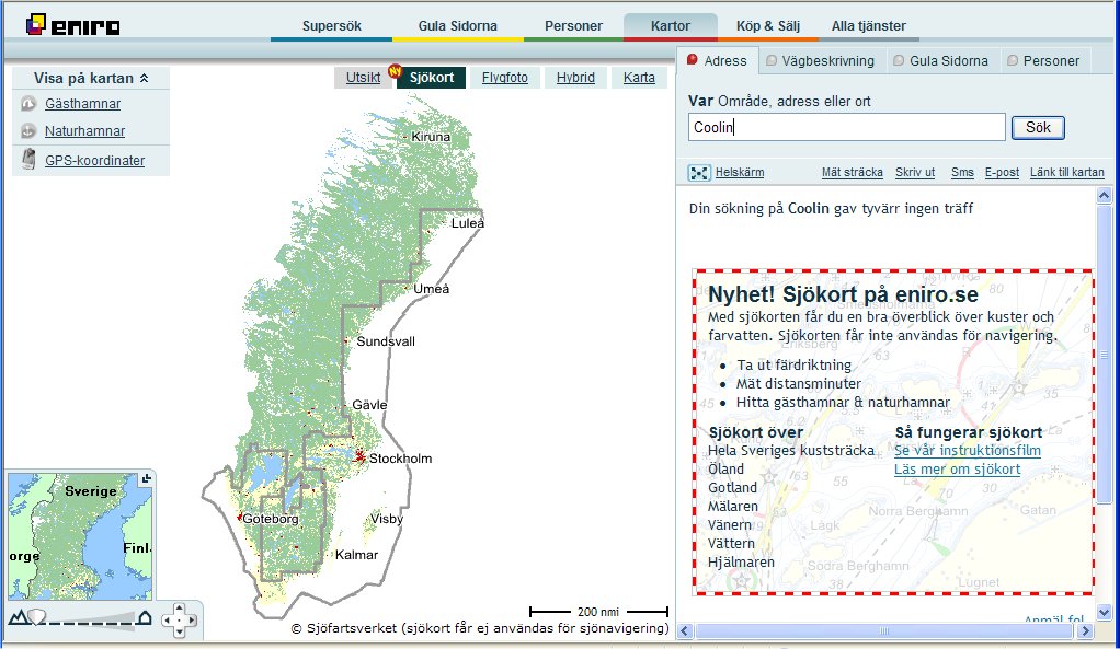 Just want to tell you that a Swedish telephone directory company has published official Swedish nautical charts on Internet, covering the whole coast. www.eniro.se