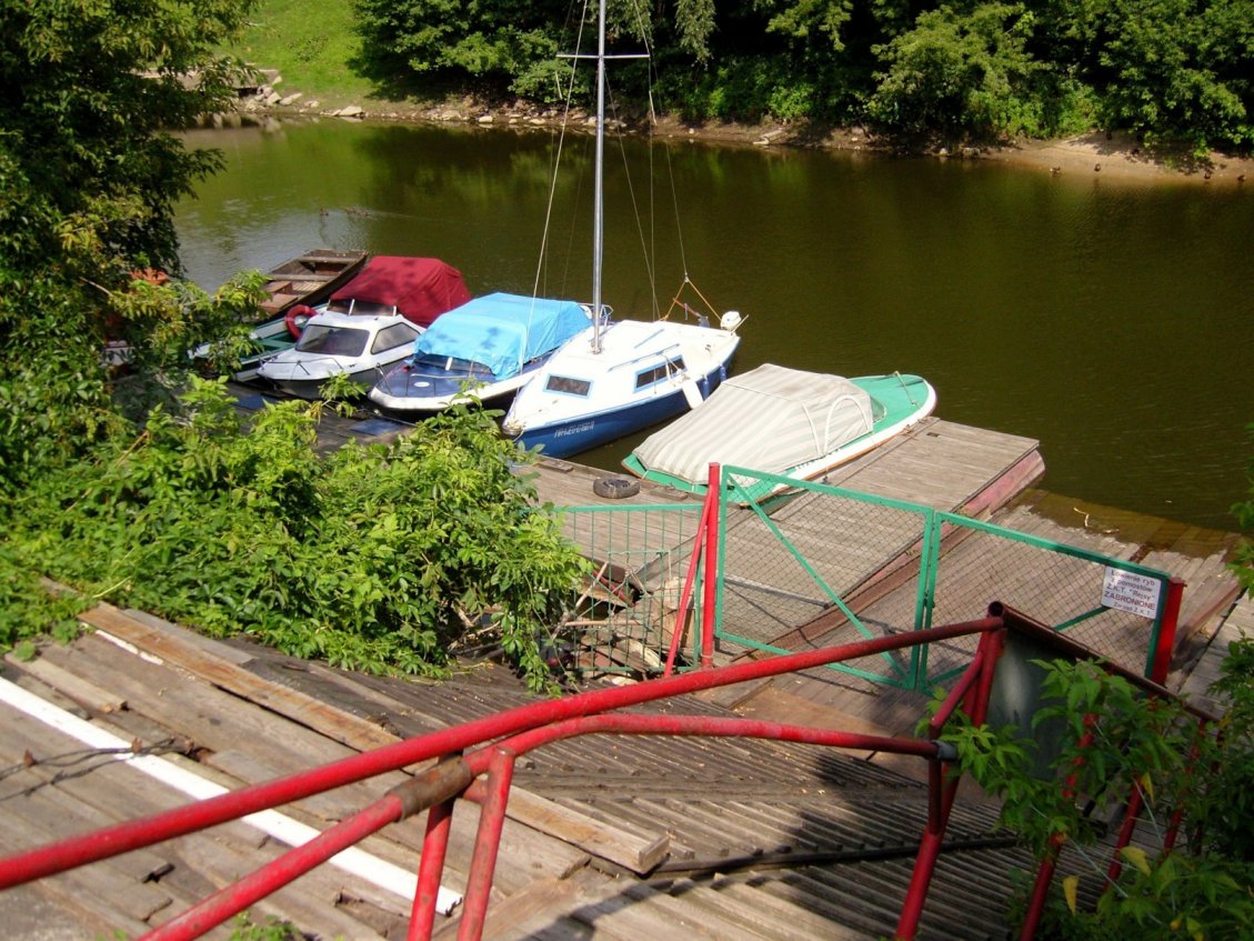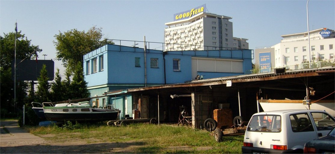 Przystań klubowa to zarazem doskonała i fatalna lokalizacja. Zaletą jest adres - dzielnica Solec, czyli w środku miasta. Wadą - niedogodny, bardzo stromy i wysoki brzeg. Łódki na przystani (żaglowe i motorowe - skromne, przeważnie własnoręcznie zbudowane. Na tablicy ogłoszeń dostrzegłem pismo "Samosteru".