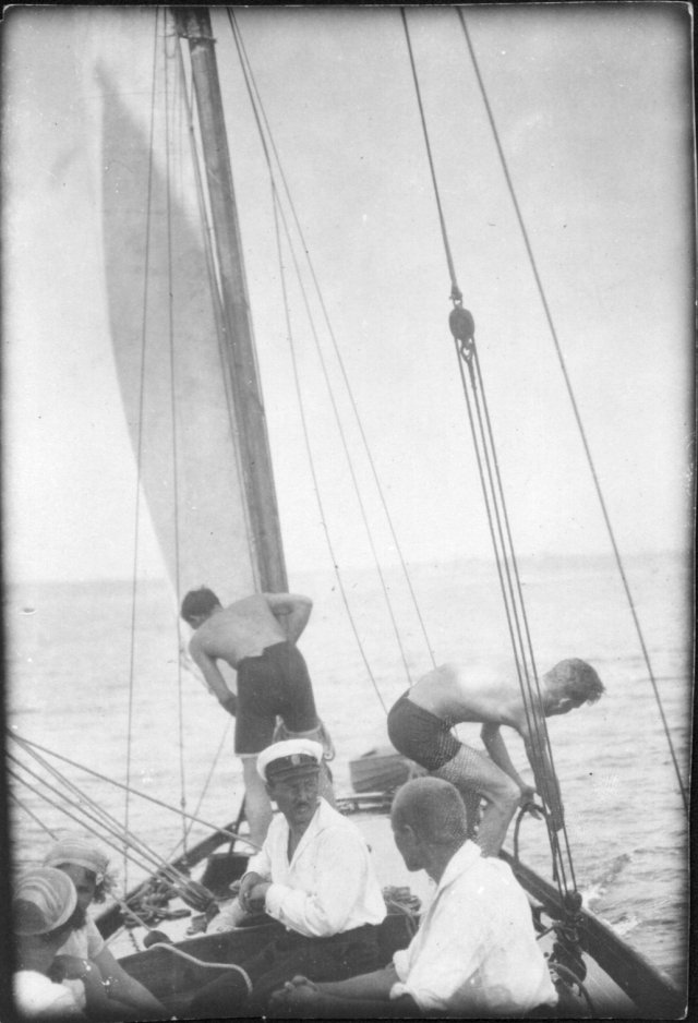 Wśród pamiątek rodzinnych (pełnię jakby rolę rodzinnego genealoga :-), a efekt można zobaczyć na stronie www.jaworscy.wa.pl ) znajduje się kilka pani Janiny, których tematem jest jacht. A więc przesyłam na pańskie ręce mój apel: kto pomoże rozpoznać na załączonych zdjęciach jacht? Osoby? Podejrzani to jacht "Jurand" (Ex-Spray, Ex-Drei Rosen, Ex-Haimat) zakupiony w 1930 przez maszoperię zainicjowaną przez Czesława Czarnowskiego z Wilna. Kapitan to wspomniany Czarnowski (?). Załoganci/-tki (?): Alina Erdmanowa Janowicz (?), Janina Jurczenko-Piotrowicz (?), Jan Janowicz "Żano" (?) i inni lekarze z Wilna? Gdzie i kiedy zrobione fotki?