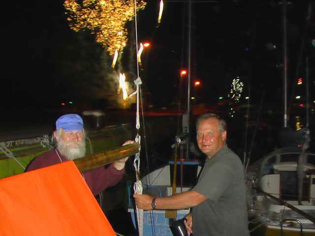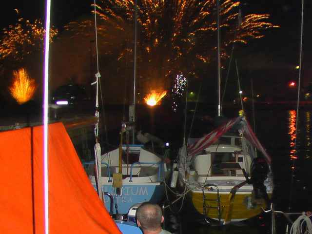 Waldek "3 sztagi" odpłynął z Ustki w kierunku Zatoki Pomorskiej. "Agona" z 2-osobową załogą też popłynęła w kierunku zachodnim. Jednak to miejsce przyciąga samotników. Plastikowym folkbotem przypłynął ze Sztokholmu Janek, Polak ze szwedzkim obywatelstwem. Oczywiście, płynął samotnie. Trafił na ustecki Festiwal Ogni Sztucznych - czterodniową imprezę uznaną za najlepszą w Polsce. Siedzimy więc wieczorami i patrzymy na płonące niebo.