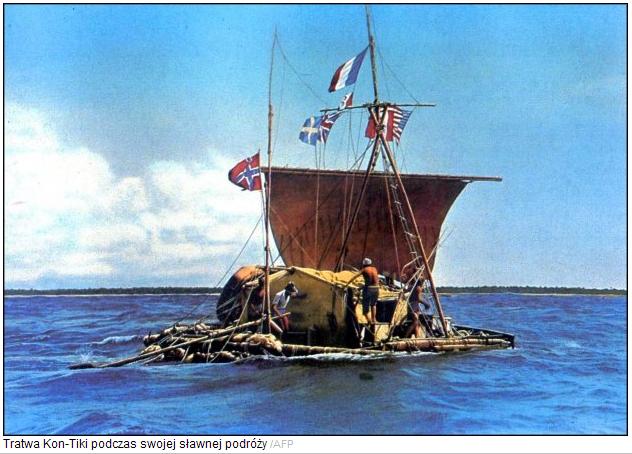 Celem wyprawy z 1947 roku było udowodnienie możliwosci przedkolumbijskiej migracji ludzi przez oceany. Na tratwie z drewna balsa 6 osobowa załoga tylko z podstawowym wyposażeniem przebyła około 4300 M z Peru do Polinezji w ciagu 101 dni.