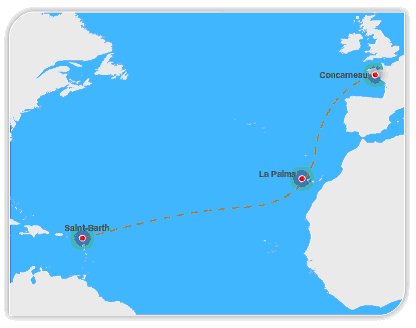 Najbliższe regaty rozpoczynają się 18 kwietnia o godzinie 14:00 GMT +2 i będą to transatlantyckie regaty, które rozpoczynają się w Concarneau we Francji, pierwszy etap prowadzi do La Palma na wyspach kanaryjskich a główny etap na Antyle do Sain Barth.