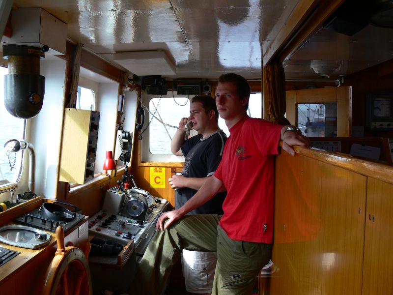 Wygląda listopadowe słońce, stajemy na chwilę w dryfie by podnieść aparaturę a potem przejść z dużą szybkością na odległy o kilkanaście mil wrak, już prawie na otwartym morzu, a w każdym razie nieosłoniętym już przez Półwysep, tam gdzie północno zachodnia fala wybudowana wiejącymi od wielu dni sztormami.