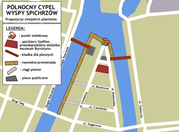 Dodatkową atrakcją cypla mają być dwie zwodzone kładki, które połączą szczyt wyspy z brzegami Motławy. Jedna z nich ma być przedłużeniem ul. Św. Ducha, druga pobiegnie przez marinę do ul. Szafarnia.