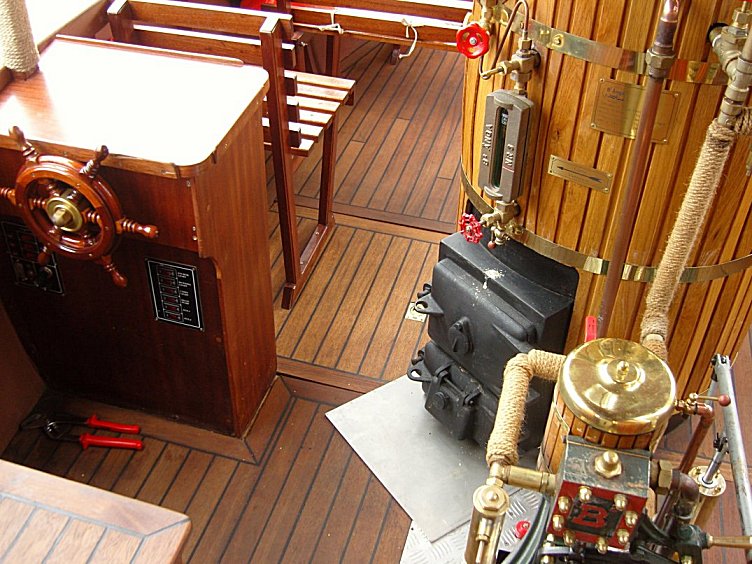 Po lewej - kółeczko sterowe, po środku - kociołek, po prawej - maszynka parowa