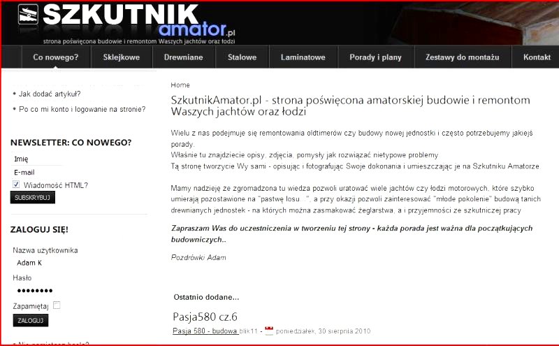 Jak wiesz Jurku - strona powstała 4 lata temu jako relacja z remontu mojego ramblera, a ponieważ dotarła do wielu zainteresowanych amatorską budową łodzi – zobacz sam jak się rozrosła…. Musiałem w tym roku całkowicie zmienić formułę i dać możliwość ludziom z zewnątrz samodzielnego wstawiania artykułów.