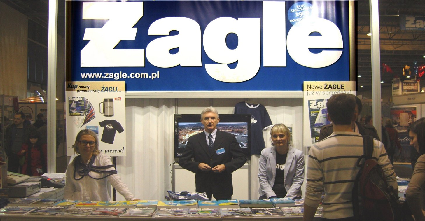 Stand "ŻAGLI" i tym razem był w najwłaściwszym miejscu. Od razu - na wejściu, bez potrzeby szukania. Nie dostrzegłem standu Chocimskiej - decyzja chyba słuszna, bo niby po co świecić oczyma za "Funiowe" wybryki. Jachtów o niemożebnym błysku żelkotu i wypolerowanej stali nierdzewnej było sporo. Nie mniej - różnych "motopomp". Najliczniej stawili się oferenci osprzętu pokładowego oraz elektroniki nawigacyjnej. Klasyczne kamizelki asekuracyjne i "półratunkowe" coraz tańsze.