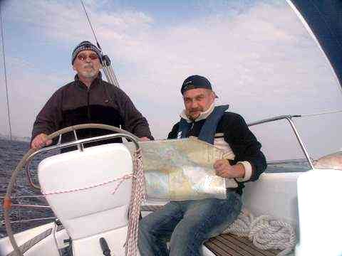 kapitan Bogdan Kiebzak (za sterem), oraz autor (z mapą)