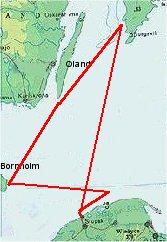 Sobota, 16 września. Wstaję dość późno, o 8. Robię posztormowe porządki, jakieś porządne śniadanie i coś do odgrzania na obiad. Koło 10 podnoszę kotwicę i wolniutko odpływam na silniku. I nagle czuję lekkie uderzenie, a następnie ocieranie się kilu o coś twardego. Za burtą widzę duży, biały głaz. Staję możliwie najwyżej i widzę kilka innych, białych plam. Na minimalnej szybkości trzymam się ciemnych powierzchni, co chwila zerkając na echosondę. Gdy pokazuje ponad 10 metrów, oddycham z ulgą, ale jestem wykończony: przecież tam mogłem zakończyć rejs! Sprawdzam, ale w zenzie jest sucho (po wyciągnięciu jachtu na zimę nie było nawet śladu tego otarcia). Stawiam fok marszowy i grot bez refów. Gdy wychodzę zza osłony wyspy, wiatr dmucha z podobną siłą i kierunkiem co wczoraj, tylko fale większe. Kto powiedział, że muszę opłynąć Gotlandię? Zmieniam kierunek i płynę wprost na Bornholm. Pełny baksztag i normalne żagle dają niesamowite emocje. Nie ma mowy, aby chociaż na minutę puścić rumpel. GPS pokazuje stale 6-7 węzłów. Gdy trafiam na kawałek spokojniejszej wody, sięgam do torby po kamerę lub aparat fotograficzny. Przed wieczorem decyduję się na zmniejszenie powierzchni żagli. Ustawiam się na wiatr, rumpel na linie i jachcik płynie samosterownie. Niestety, fał grota zaciął się i nic nie pomaga. Również wyprawa na dzób w celu zmiany foka na sztormowy kończy się równie bezskutecznie co boleśnie. Rezygnuję i tylko przynoszę z kabiny nóż – w razie czego będę ciął fały. Zachód słońca jest wspaniały i zarazem groźny. Po prawe widać poświatę mijanej Olandii. Czasem na jej tle przesuwają się światła jakiegoś statku.