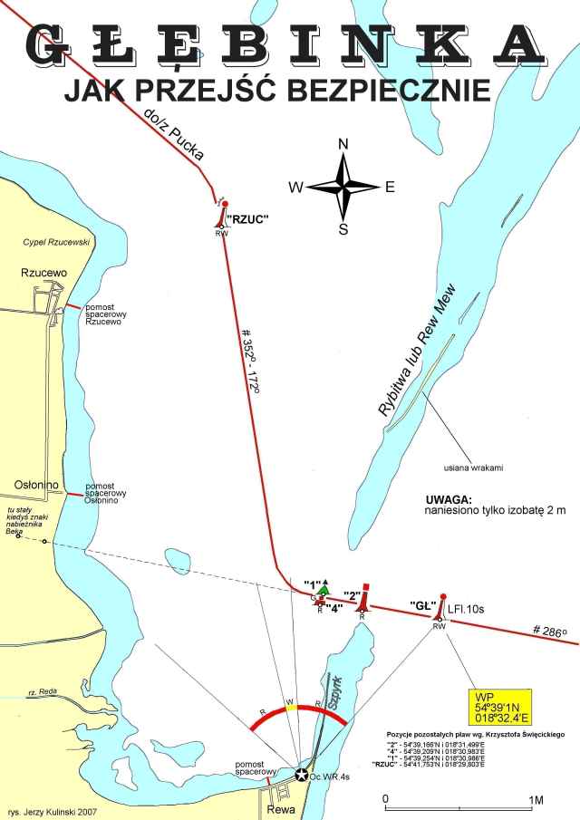 1. Prosimy o rozważenie celowości i ekonomicznej zasadności przywrócenia prostych i tanich, dedykowanych dla żeglarzy amatorów znaków nabieżnika dziennego ułatwiającego bezpieczne pokonanie Depki w drodze do i z Pucka. Niestety z własnej praktyki wiemy, że nieprzyjazne (płytkie i nie oznakowane) wejście do portu jachtowego w Pucku nie sprzyja odwiedzinom jachtów żaglowych w tej marinie. Sytuację poprawiły inwestycje w infrastrukturę, łatwiejszego dawnego portu rybackiego lecz nadal pozostaje przeprawa przez oznakowaną bojami lecz niebezpieczną Głębinkę. Choć praktyka pokazuje, że coraz więcej jachtów wyposażonych jest w GPS to jednak szczególnie dla mniejszych i obcych jednostek nabieżnik (dawna Beka) bezpiecznie prowadzący przez tę potencjalną pułapkę byłby przydatny. Tym bardziej, że zatoczka w okolicach Rewy może być bezpiecznym i atrakcyjnym kotwicowiskiem dla jachtów.