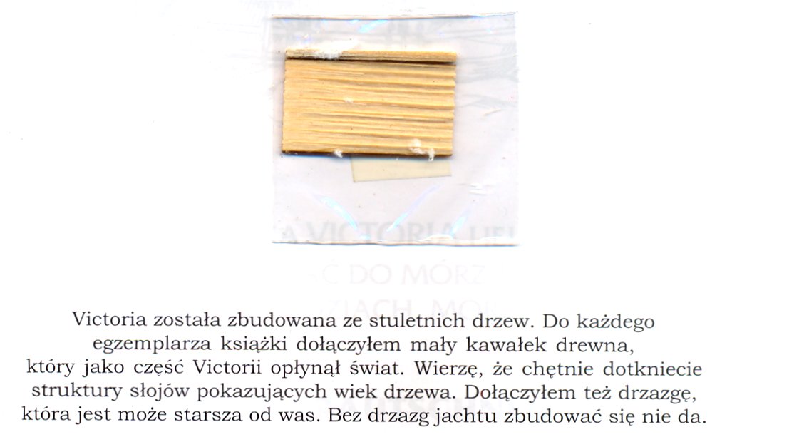 Książka jest absolutnie multimedialna - jest tekst, są rysunki, są fotografie, jest i ... płyta video. Nie, to nie koniec - do każdej książki Ruda dołączył - nie, nie uwierzycie ... mały kawałek drewna z Jego ukochanej VICTORII. Drewienko, które okrążyło glob. Robi wrażenie.