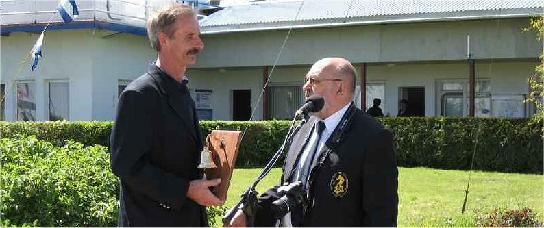 Po pierwszyb biegu Regat przystąpiono do uroczystości. Mowę trzymał Komandor NEPTUNA - Andrzej Chabrowski. Krótko, treściwie przedstawił koleje losu naszego jachtklubu od klubu przyzakładowego, przez międzyzakładowy, dysydencki, do niezależnego-samorządnego. Nie ma co tu sie silić na opisy - kto był, to zobaczył jak NEPTUN obecnie się prezentuje. Jaki jest "qń" - kazdy widzi.
