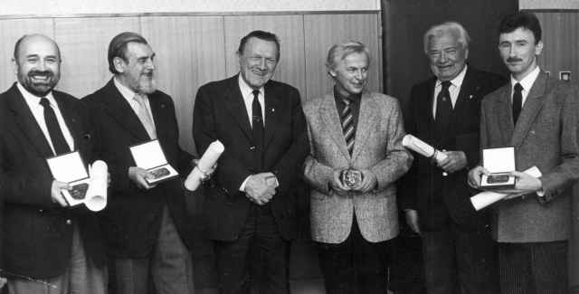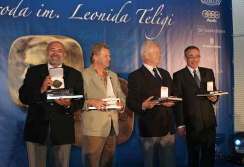 Przy okazji podziękowań podrzucam Wam dwie fotografie pstryknięte w odstępie wielu lat. Pierwsza - to dzieło Jurka Fijki. Niestety, ani fotografa, ani połowy laureatów tamtej Nagrody Teligi już nie ma wśród nas. Tylko Waldek Heflich nie tylko żywy, ale wyglądający jak dziś. Drugą fotografia - autorstwa Tomasza Augustyniaka - przedstawia laureatów piątkowej uroczystości.
