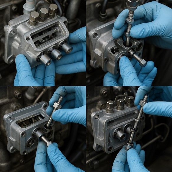 Na ich powierzchniach będą wyraźne ślady zatarcia. Jak je usunąć? Umocujcie je w imadle przykręconym do stołu (czołami) i wypolerujecie je skórzanym paskiem od spodni wywiniętym na lewą stronę (jak niegdyś brzytwę). Czy to jest pełna regeneracja? Oczywiście nie, ale po posmarowaniu olejem napędowym i włożeniu ich z owrotem ożywicie silnik. Będzie kulał na wolnych obrotach? Pewnie trochę tak - ale to bez znaczenia, bo bez zarzutu zapewni Wam prędkość marszową. Po bezpiecznym powrocie do portu zdemontujcie pompę oraz wtryskiwacze i zawieźcie ją do specjalistycznego zakładu na kalibrację par - sekcja pompy->wtryskiwacz. I raczej nie pomylcie kolejności montażu wtryskiwaczy...