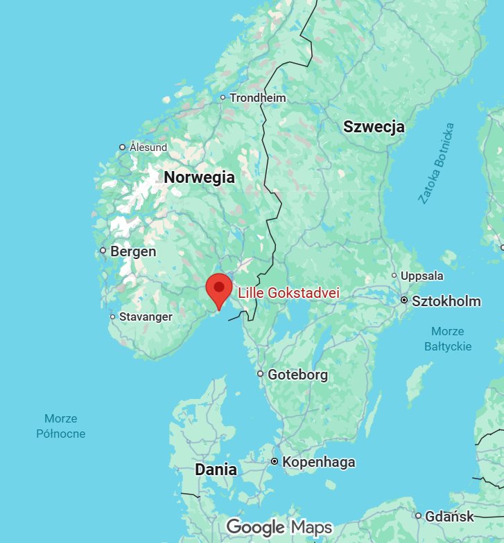 2. Mapa Skandynawii z Gokstad w Oslogjordzie – duńskie Gokstad 25 km na W od Kopenhagi.