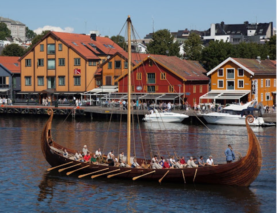 Oslofjordu w miejscowościach Gokstad i Oseberg. Wykopane tam dwie wikińskie „długie łodzie” grzebalne sprzed 12 wieków, świetnie zachowane dzięki zasypaniu ich w kopcach konserwującej glinki, są eksponowane w Oslo. Co ciekawe, miejscowości o identycznych nazwach na duńskiej Zelandii, w pobliżu Roskilde, pełniły i do tej pory pełnią podobną rolę, wspieraną przez tamtejsze muzeum, obrazujące duńsko – norweską wikińską sztafetę.