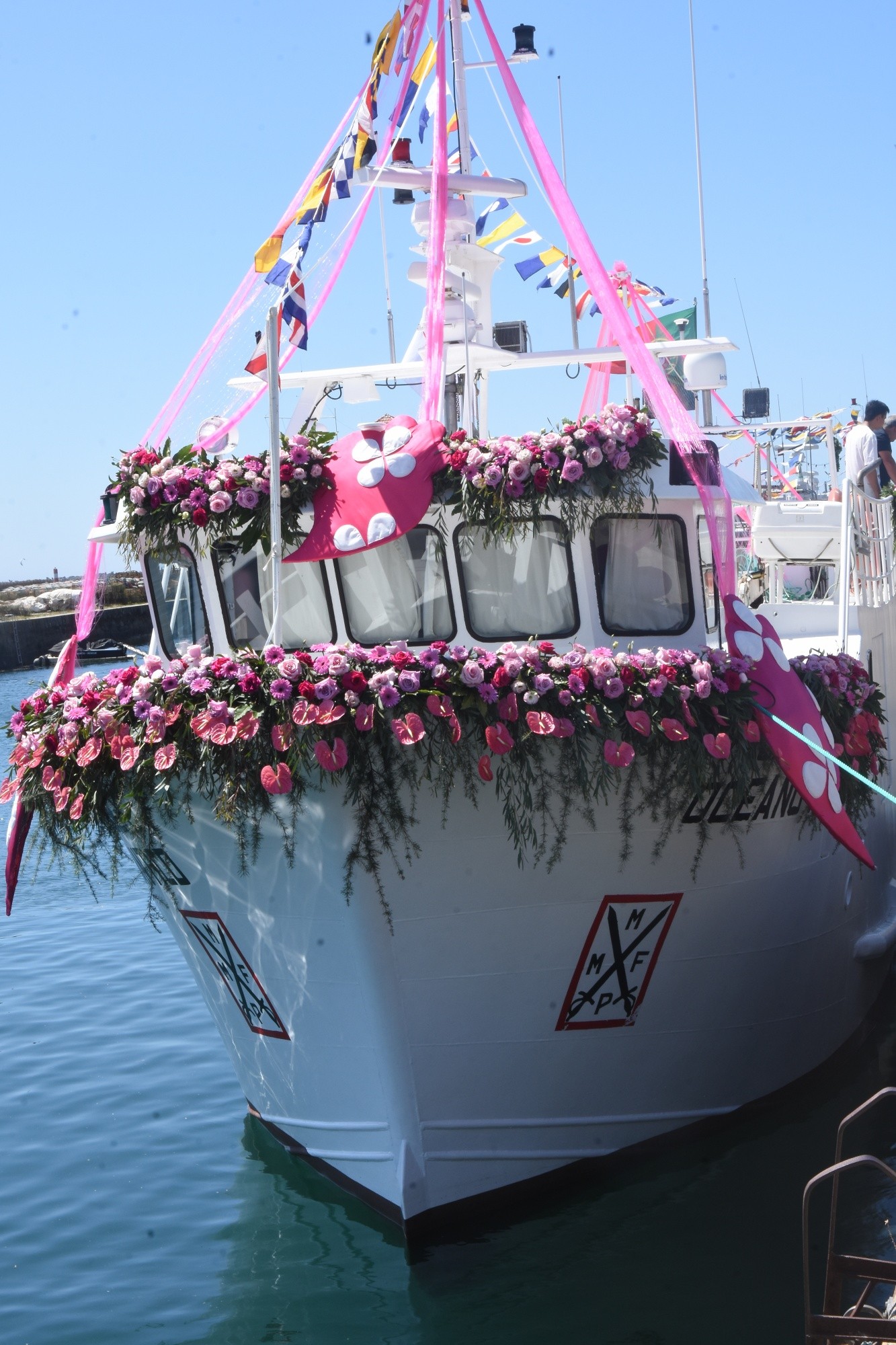 Ruszamy dalej, a dalej to już Portugalia. Kolejny kraj na naszej trasie, kolejna flaga pod salingiem do naszej kolekcji. Zawijamy do Viana do Castello. Oczywiście znów trafiamy na lokalną fiestę. Doroczne święto miasta połączone z uroczystościami religijnymi. Koło mariny jest rząd jarmarcznych budek z ofertami miejscowych rzemieślników i artystów. Zero chińszczyzny, same naprawdę gustowne wytwory artystyczne i ludowe. W dodatku miejscowi w każdym wieku przebierają się w ludowe lub stylizowane na ludowe, stroje. Tak normalnie. Od 1867 roku przez miasto maszerują zespoły ludowe z obowiązkowymi zestawami bębniarzy. Od 1968 roku na ulicach tworzone są dywany z sypanej kolorowej soli, po których następnego dnia w południe przechodzi procesja. Figura Nossa Senhora d’Agonia przenoszona jest na jeden z przystrojonych odświętnie kutrów rybackich i odbywa procesję wzdłuż wybrzeża, aż do ujścia rzeki Limia, prosząc o dobre połowy i bezpieczne powroty. Fiesta co roku odbywa się 20 sierpnia i cały tydzień przed tym terminem normalne życie w mieście zamiera, w urzędach niewiele można załatwić i tylko policja ma ręce pełne roboty. Przede wszystkim kierując wyjątkowo wzmożonym ruchem. Znowu nam się udało, bo nie wpuszczono nas do przepełnionej mariny pozostawiając przy zewnętrznym pomoście. Najlepszej trybunie do podziwiania wodnej procesji, co też skrzętnie wykorzystaliśmy. Znów po kilku dniach ruszamy dalej w kierunku Porto. Duże miasta nie są najwyżej