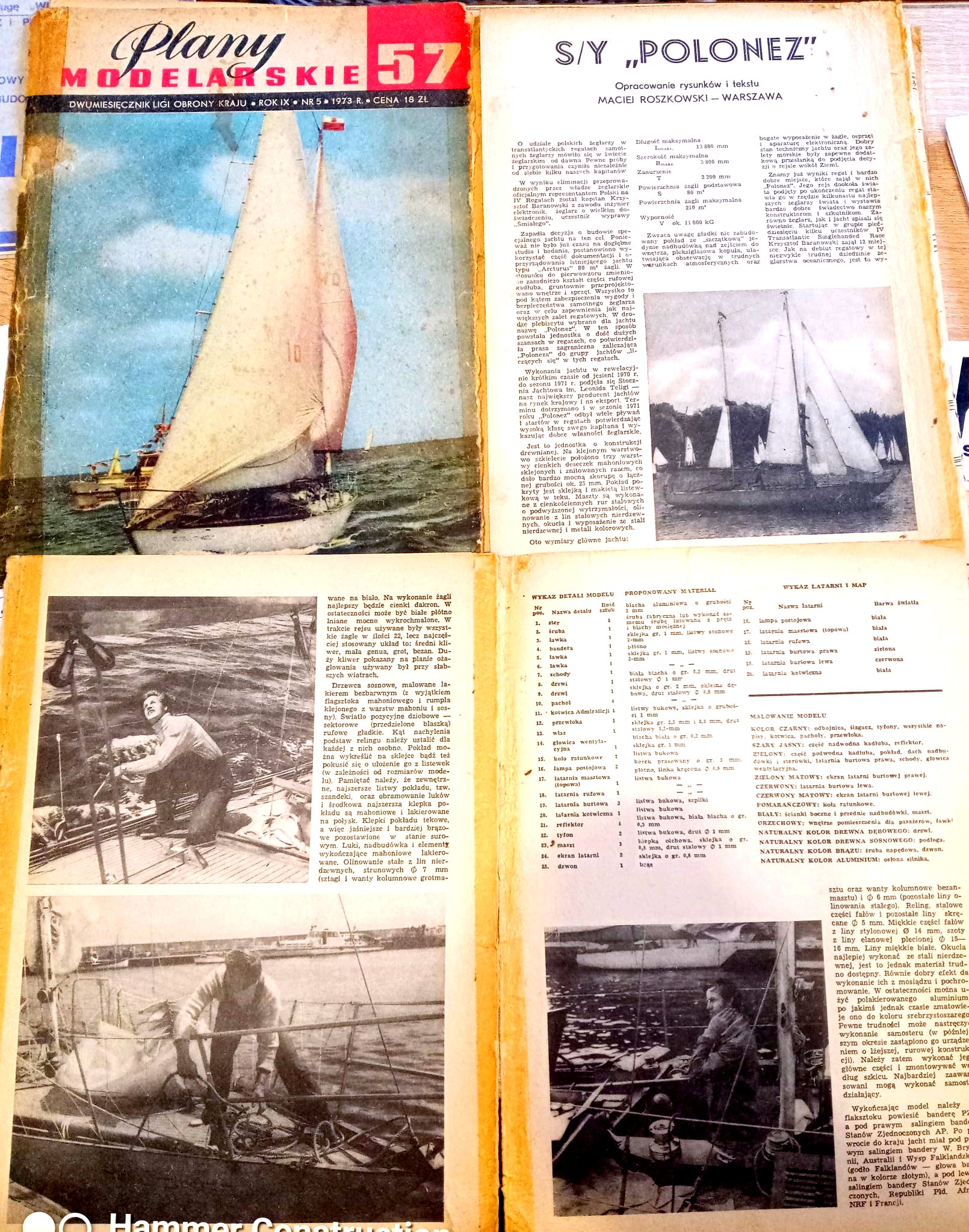 Najciekawsze to chyba dokumentacje kilku łodzi. W folderze Janusza Maderskiego z 1991 roku są ceny dokumentacji: Pasja384 - trzysta tysięcy zł, Setka - 550 tys. zł, Pasja 800 - dwa miliony zł. Mam sporo „Planów Modelarskich”, teraz dostałem kolejne i zaciekawiła mnie ich zawartość. Artykuł o „Opty” Leonida Teligi i o „Polonezie” Krzysztofa Baranowskiego. Krzysztof Baranowski teraz płynie i trzymajmy kciuki, na zdjęciach młodziutki żeglarz. Tę wiadomość zostawiłem na koniec, ale jest nakomita. Moje zbiory stale rosną, ale takiej kumulacji kolejnych gazet w tak krótkim czasie jeszcze nie miałem.