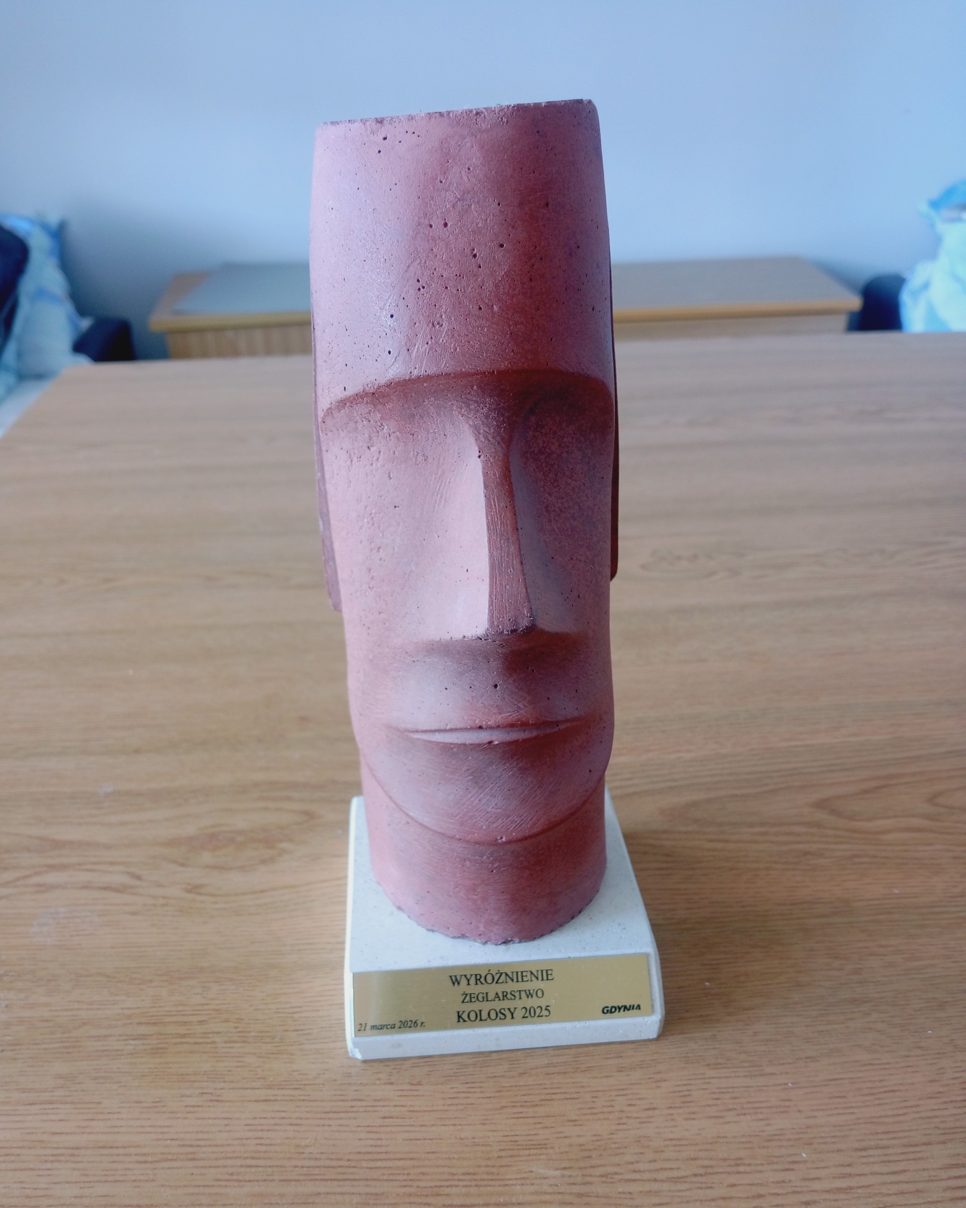 Tu niecierpliwie czekałem na ogłoszenie werdyktu. Pierwszym było wyróżnienie dla wyprawy na jezioro Titicaca i w tym momencie resztki nadziei opadły, bo na „Kolosa” to całkiem nie liczyłem. A tu kolejne nazwisko pada moje i też dostałem wyróżnienie. Za rejs Setką Edyta Krakowiak również została nagrodzona wyróżnieniem. „Kolosa” nie przyznano. Teraz znowu emocje sięgnęły zenitu. Razem z kumplem z załogi poszliśmy odebrać nagrodę, dla mnie to „Kolos”, bo wygląda identycznie tylko mniejszy. Do wieczora nie wypuściłem go z rąk.