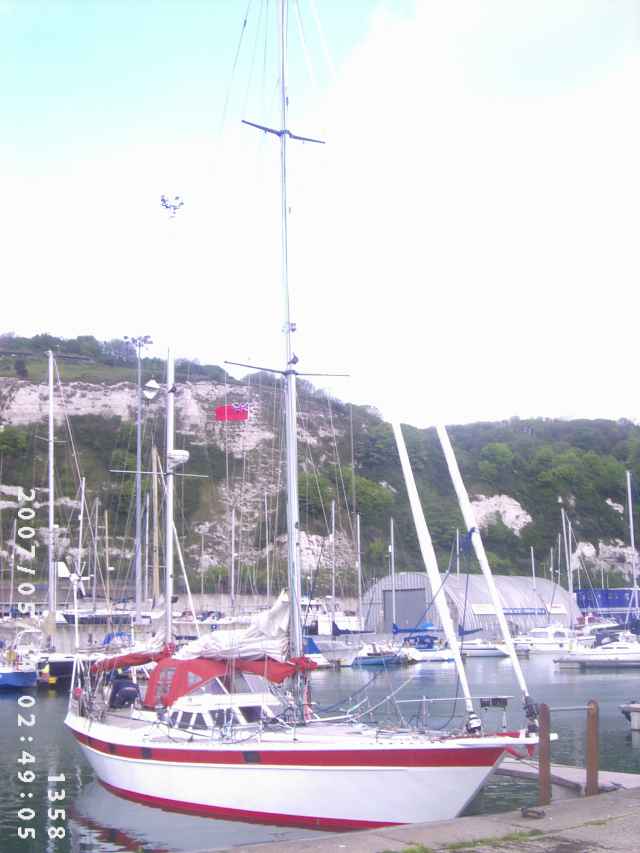 Juz na początku rejsu dostaliśmy wiatr N-W o sile 15 - 17 m /sek czyli dobra 6B i autopilot nie bardzo dawał sobie z tym radę.Krótki odcinek do Skagen pokonywaliśmy dwie doby.Po trzech dniach zawinęliśmy do Thyboron gdzie udało nam się naprawić genuę.Niestety ale jacht ma juz 15 lat i tylko 10000 Mm za sobą ale to tez ma wpływ na jakość ożaglowania.Jednak jacht jest dzielny i dobrze zachowuje sie w trudnych warunkach ( 9 B).Gorzej znoszą to ludzie ,którzy nie zdają sobie sprawy z trudów jakie ich czekają.Nie piszę o rzeczach nieprzyjemnych które zawsze sie zdarzają gdyż rejs uważam za udany a duży sukces odnieśliśmy dzięki dobrej załodze.Andrzej Paszcza i Krzysztof Szoblik z Ustronia to wspaniali żeglarze.Bardzo wytrzymali i odporni na trudy żeglugi.Silni zarówno psychicznie jak i fizycznie.
