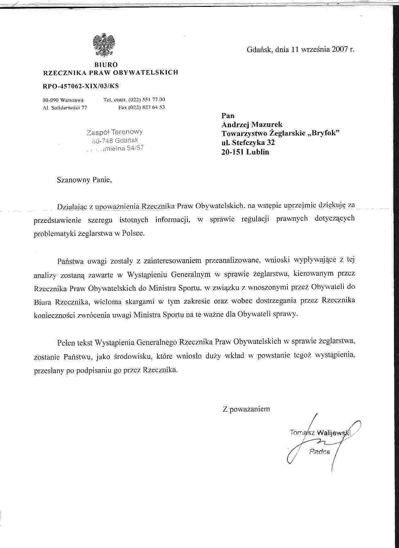 "Pukajcie, a będzie wam otworzone" - Andrzej Mazurek - Prezes "Bryfoka" stukał i... wystukał podziękowanie i obietnicę. Na drugim końcu Polski od pewnego czasu stuka takze V-Prezes SAJ - Krzysztof Klocek. To są konstruktywne działania pokazujące żeglarzom kim są ich przyjaciele i reprezentaci, a kim... kieszonkowcy.
