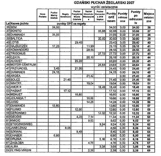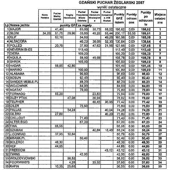I edycja Gdańskiego Pucharu Żeglarskiego dobiegła końca. Wszystkich sympatyków żeglarstwa i entuzjastów zmagań na wodzie zapraszamy na uroczyste zakończenie Gdańskiego Sezonu Żeglarskiego, które odbędzie się 29 września 2007 roku