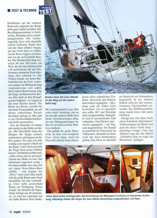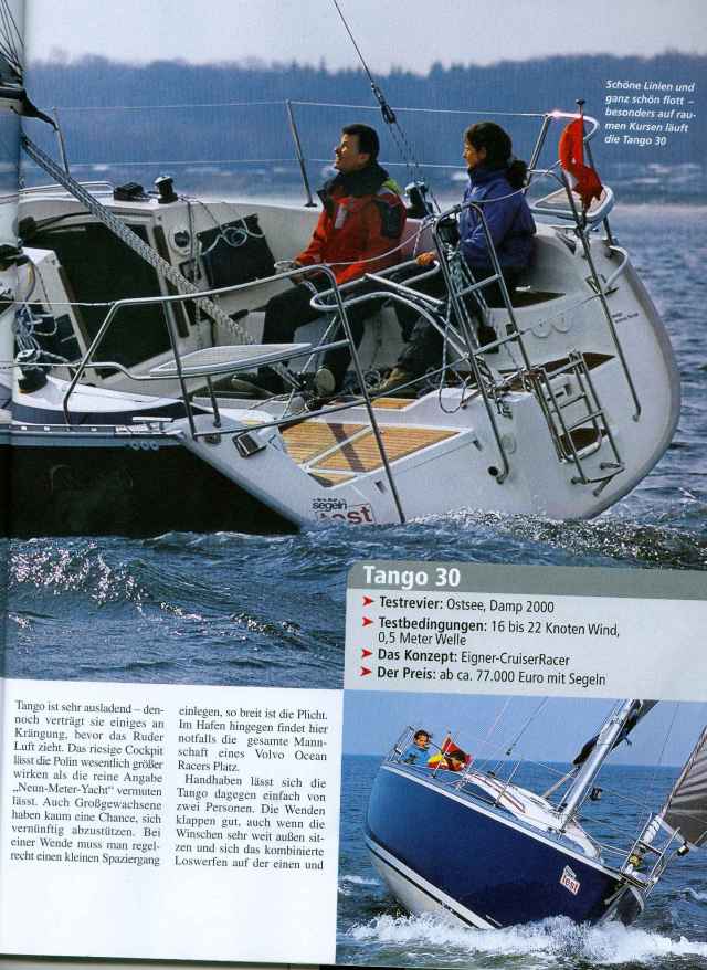 aby uzupełnic gratulacje dla Andrzeja Skrzata pozwalam sobie podrzucic "oryginały" tzn zeskanowane lub sciagniete z internetu testy łodki jego projektu - Tanga 30 - wraz z tłumaczeniami wszystkie testy ukazały sie w niemieckiej prasie w tym roku Die Yacht 07/2007 (kwiecien), Palstek3/07 (maj) , Segeln 8/2007 (lipiec)