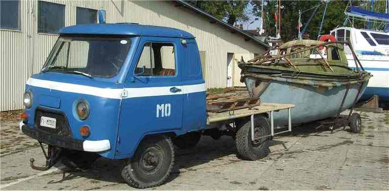 Jak widzicie na załączonej fotografii - w klubach zaczęły się już przedzimowe przemeblowania. Jachty wychodzą na ląd i przygotowujemy je do zimowego snu. Na fotografi widać jak neptunowy "ciągnik siodłowy" wlecze formy do zacisznego kącika przystani. Kolorek, paseczek i literki zdradzają poczucie (czarnego) humoru gospodarzy.