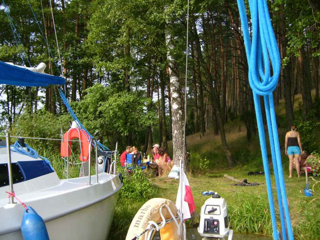 Jak patrzę na fotkę cumującego jachtu rufą do łąki to nie widzę żadnej różnicy miedzy Wdzydzami a Mazurami. W kwestii formalnej; nigdy w tak "orczykowski" sposób nie cumuję.