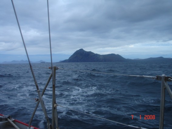 O godz. 0505 w dniu 07.01.2008 mijamy pod żaglami trawers Przylądka Horn! Rozjaśnia się, więc obowiązkowa sesja zdjęciowa, szampan, nabranie wody z dwóch Oceanów itd. Radość na pokładzie wielka – osiągnęliśmy nasz cel!