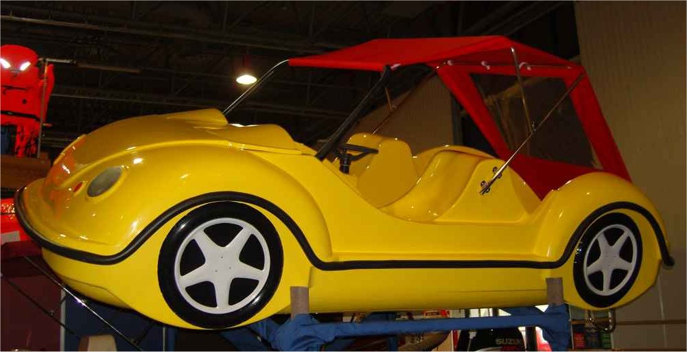 A jak tam tegororoczne "WiW"? Lawinowo rośnie ilość wystawianych mydelniczkowych motorówek, drogich, błyszczących, szybkich i dla mnie zupełnie, zupełnie nie ciekawych. Zatrzymałem się tylko przy trzech - przy imitacji oldtimera, wesołej - amfibii oraz przy maleńkim poduszkowcu, którym z ochotą bym się przeleciał nad mokradłami i płyciznami.