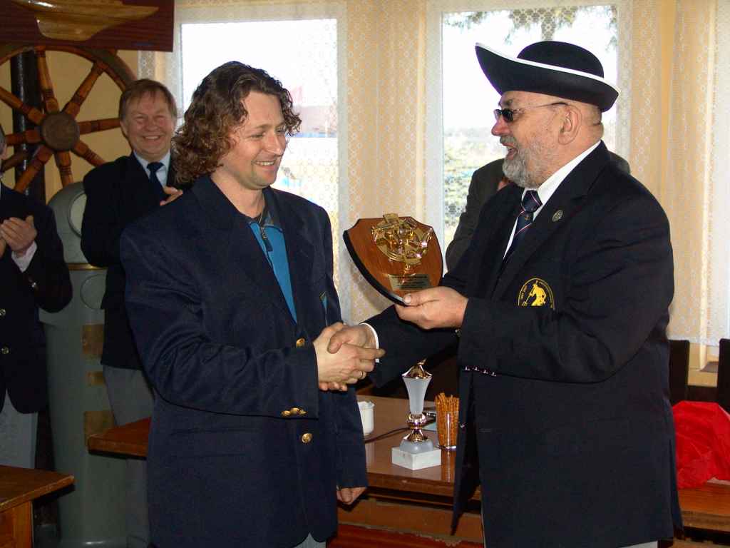 W drugiej części zebrania odbyło się wręczenie corocznie przyznawanej i fundowanej przez autora naszej witryny, Jerzego Kulińskiego nagrody za "neptunowy"rejs roku - w tym roku nagrodę tę zdobył nasz kolega Igor Rejmer, za prześwietny rejs malutkim jachtem na Kattegat oraz za próbę bicia prędkości przelotu tymże jachtem (s/y "Szerszeń") w drodze do "Neptuna". Był o tym news w tym okienku.