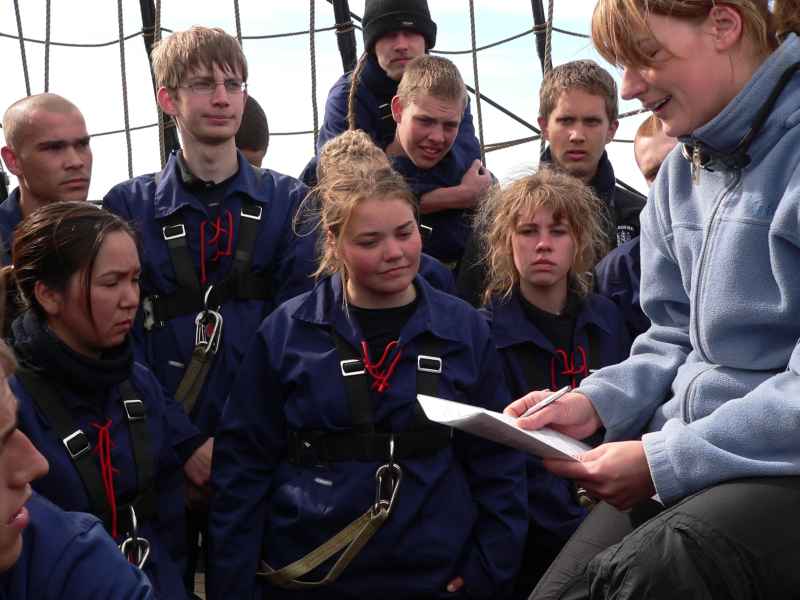 Na morzu, w rejsie, uczą się pełnienia wacht morskich, sterowania, stawiania i zwijania żagli, manewrowania statkiem pod żaglami, konserwacji statku, spawania, robót linowych i prac hotelowych. Uczą się również jak przechowywać prowiant i jak zaprowiantować statek. Oczywiście pełnią też wachty kambuzowe w kuchni.