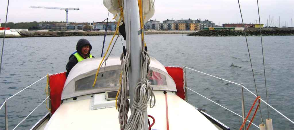 Pierwszy etap z Lomma (sympatycznej mariny trochę na północ od Malmö) do Świnoujścia przepłynęliśmy w załodze 2-osobowej, potem ze Świnoujścia do Górek Zachodnich – w załodze 3-osobowej. Wypłynęliśmy z Lomma 28.04.2008. Wiało SE 7oB. Po krótkim pływaniu musieliśmy zawrócić, ponieważ trochę nam wytrzepało genuę, której nie udało nam się opanować za pomocą miękkiego rolera. W porcie, po wycieczce na maszt, roler został jako atrapa, a do obsługi przednich żagli odtąd używaliśmy już fałów.