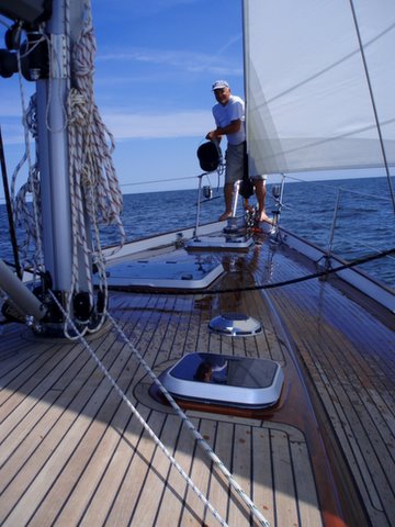 Na załączonym zdjęciu: zmywam słoną wodą z pokładu wieloletni kurz i i swój pot wylany przy jego trzyletniej odbudowie/przebudowie. Czasy się zmieniają i jachty też mogą, chociaż niektórym mogło się to nie podobać. Dla nich mam jedno pytanie, jako odpowiedź: a co ty zrobiłeś dla Poloneza w ciągu tych 20 lat?