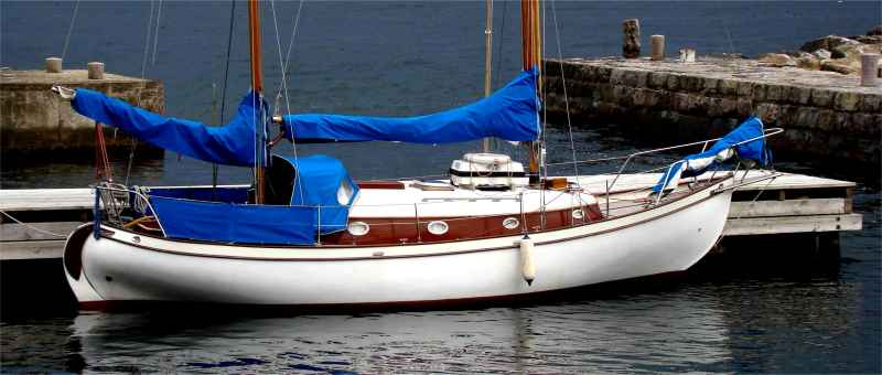 Jeden z moich przyjaciół posiada naprawdę ciekawą łódkę. Na tle szkaradnych, ale modnych teraz mydelniczek z retroussowymi rufami (wzorowananymi na kształcie łyżki koparki przedsiębiernej) - ta łódka prezentuje się wspaniale. Naprawdę zwraca uwagę linią, wdziękiem i elegancją. Została zbudowana wcale nie tak dawno, bo w 1987 roku. Jest kopią duńskiego szpicgata z 1934 roku. Projektant - Georg Berg. Dwumasztowa, ożaglowanie typu kecz. Kadłub z laminatu, pokład drewniany. Długość 8,59 m, szerokość 2,8 m, zanurzenie 1,45 m, wyporność 3,8T, stacjonarny czterocylindrowy silnik wysokoprężny, o mocy 21KM, typ KUBOTA V 800-B. Zbudowany jest solidnie, mocno i bez obaw można tym jachtem wyruszyć na ocean.