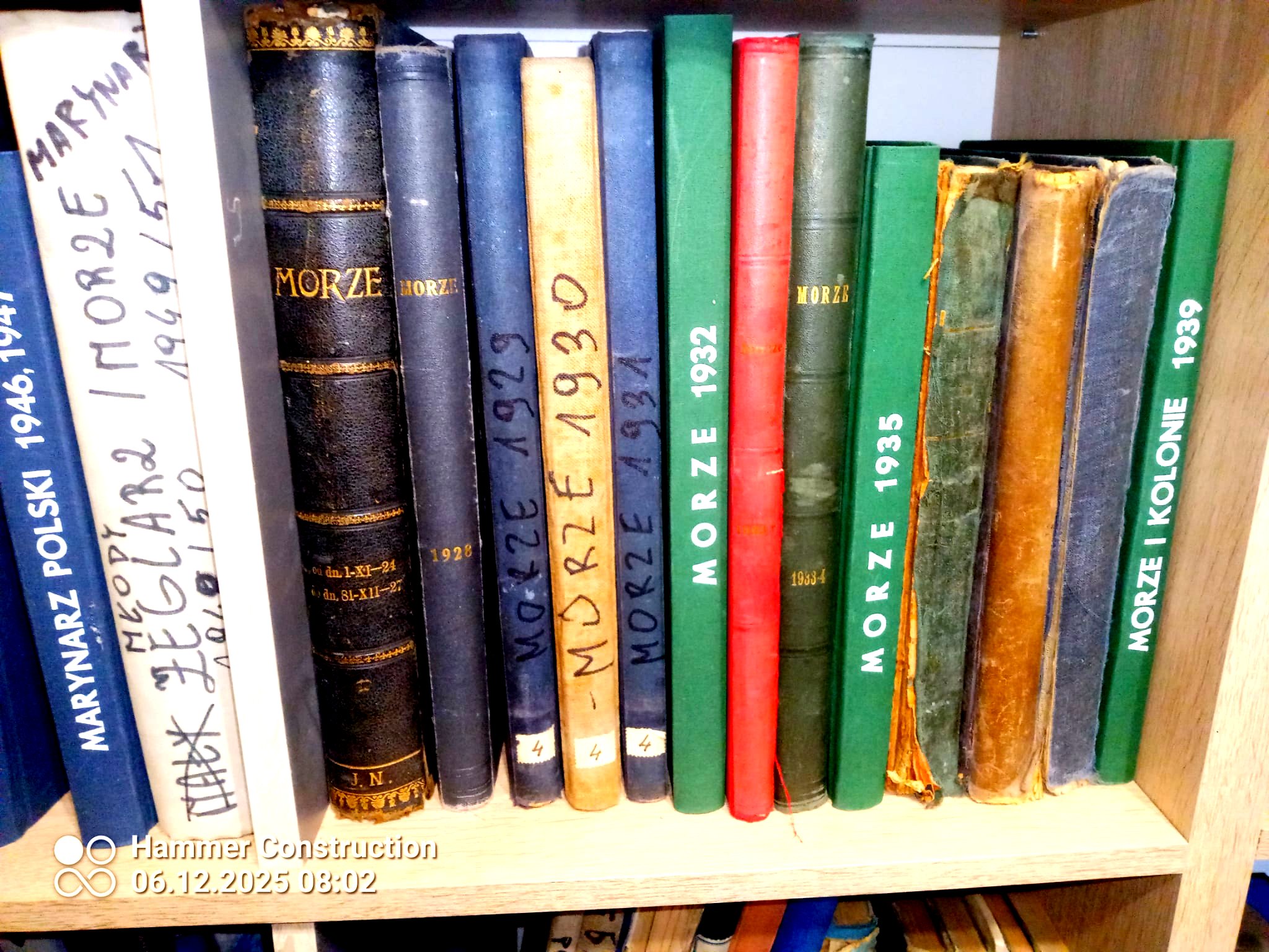 Właśnie uzupełniłem największą lukę w moich zbiorach miesięcznika „Morze”. Kupiłem roczniki 1929, 1930 i 1931. Miałem pojedyncze numery z tych lat. Teraz mam oprawione wszystkie przedwojenne wydania, od 1924 do 1939 roku. Sporo też mam pojedynczych numerów przedwojennych. Pozostało uzupełnić niewielkie braki w kilku rocznikach powojennych i będzie komplet. Zawartość to jedno pasmo ciekawostek. Opiszę tylko najciekawsze: Sześć tygodni w lodach Bałtyku: relacja z utknięcia w lodach zatoki Kilońskiej s/s „Tczew”, sześć stron ciekawej relacji/ znaczy, kiedyś zimy bywały/ Zostali wyswobodzeni przez niemiecki pancernik „Elsass”. Kolejna ciekawa relacja ze zdjęciami: Walki Flotylli Pińskiej na Prypeci 1920 rok. Opis zwycięskich walk koło Czarnobyla. Kolejny artykuł to opis rejsu O.R.P. „Iskra” do Ameryki, sporo zdjęć. Reklamy producentów krążowników, kontrtorpedowców i łodzi podwodnych już pojawiają się w gazecie, dziś wiemy, że była to już zapowiedź wojny \rocznik 1930\.