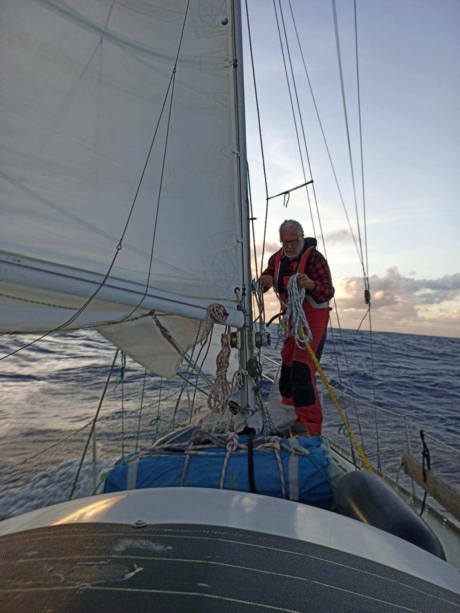 W ciasnocie zapakowanego po uszy „Cartera” (30’), bo w końcu rzeprowadziliśmy się z 80-metrowego mieszkania do 9-metrowej łódki, jazda z „ciepłą koją” sprawdziła się znakomicie. Nasz Przyjaciel, który postanowił sprawdzić, czy takie spędzania czasu na emeryturze będzie mu jeszcze sprawiało przyjemność, chyba odhaczył ten rejs jako doświadczenie pozytywne. W każdym razie my mieliśmy bardzo komfortowy przelot z możliwością wysypiania się niemal do woli.