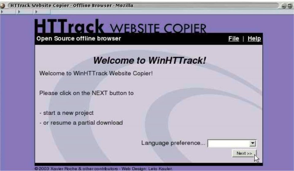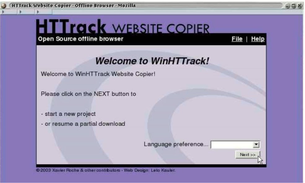 Ilustracja 1. Ekran powitalny WinHTTrack.