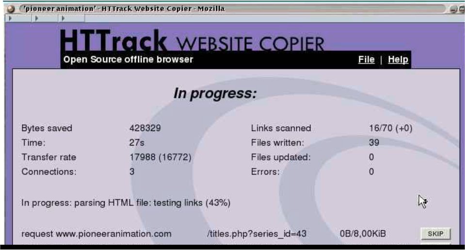 Ilustracja 3. Okno postępu pracy HTTrack.